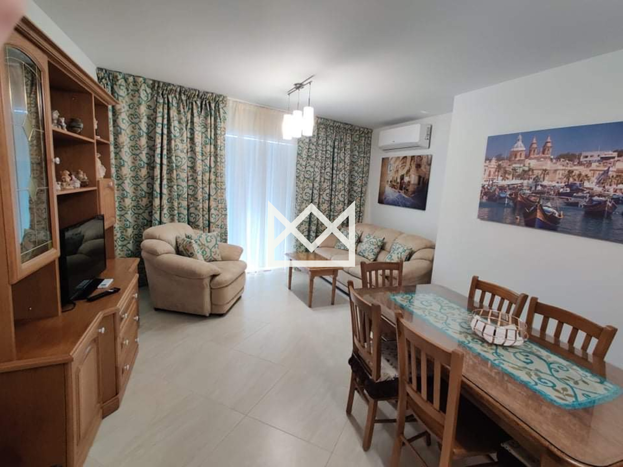 Apartment for rent in Marsalforn, fully air-conditioned and ready to move into. The property features 2 bedrooms, 2 bathrooms, and a bright open-plan kitchen, dining, and living area. It also enjoys both a front and back balcony, providing good natural light and outdoor space. Ideal for comfortable year-round living.