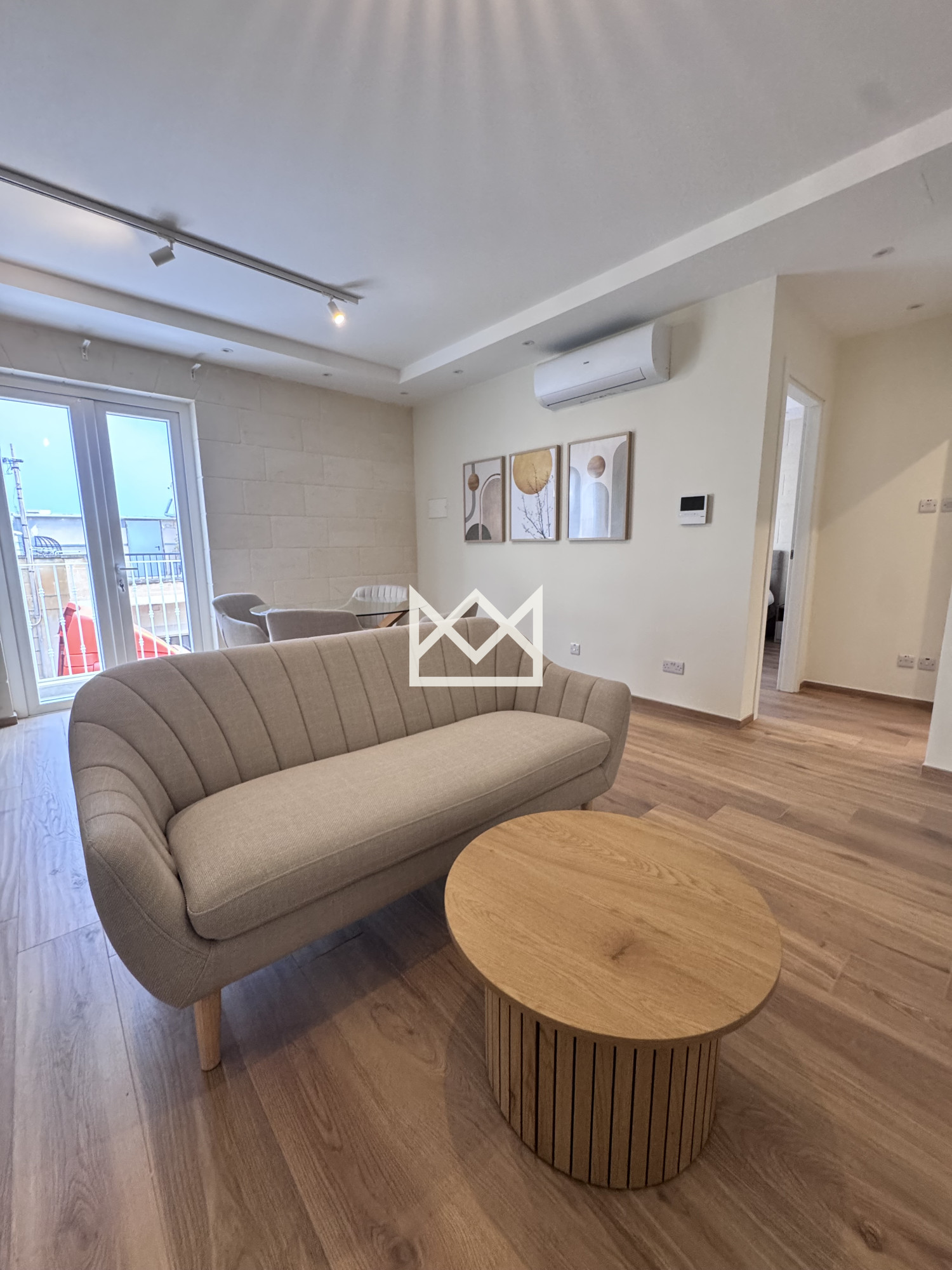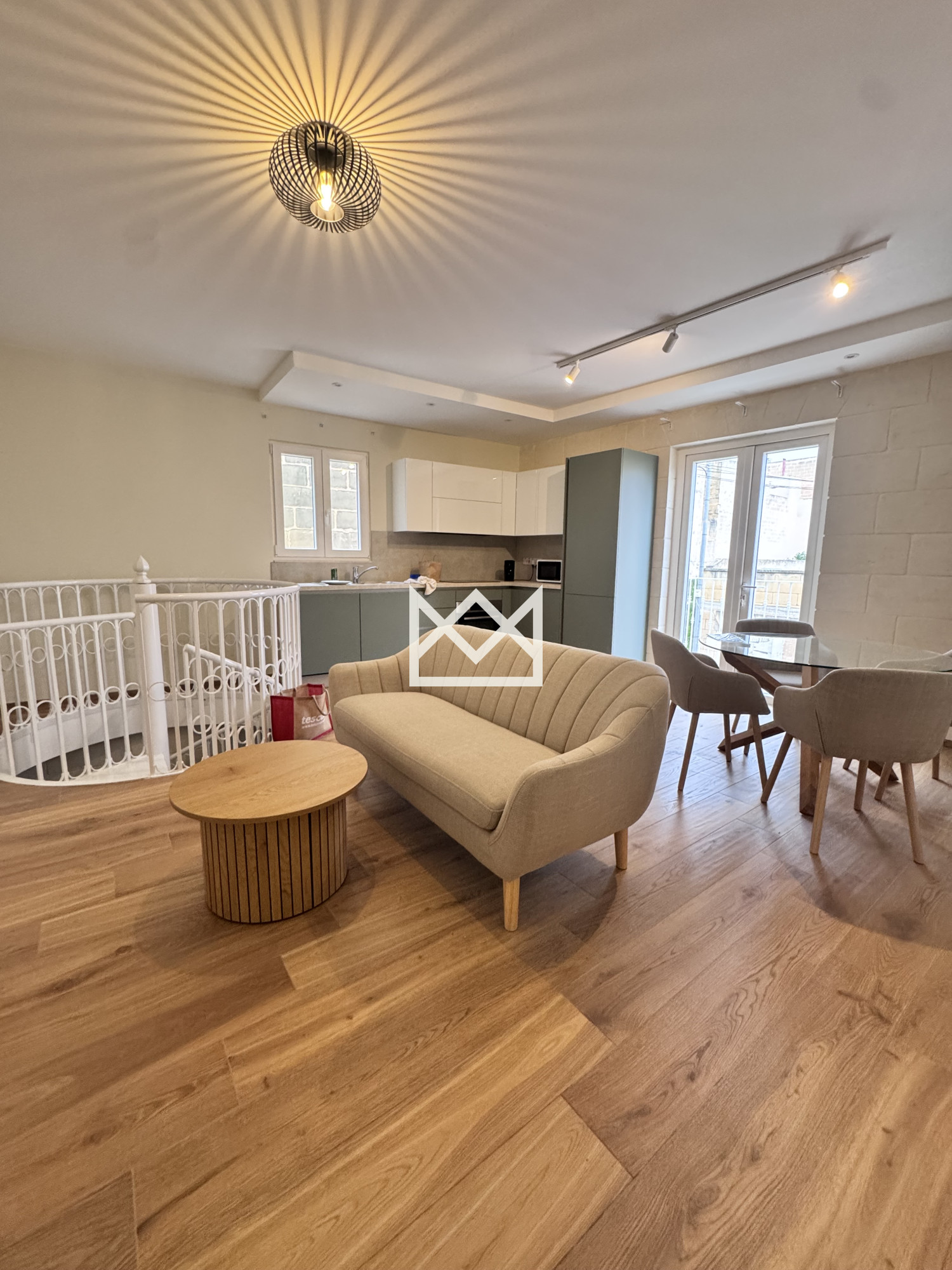 Kercem-A stylish one-bedroom home set over two floors, featuring a double bedroom, a fully equipped open-plan kitchen, dining and living area, plus a separate lounge with a sofa bed.