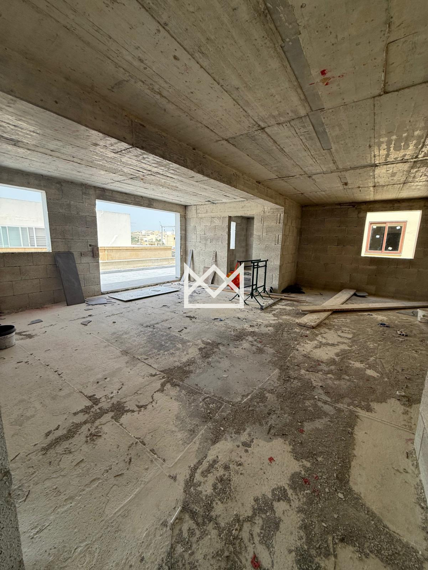 Ghajnsielem- Penthouse build in shell form , and will be sold with some finishes. It comprises if an open plan plan kitchen/Dining/Living 3 bedrooms, 3 bathrooms and surrounded with Terraces.